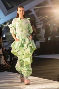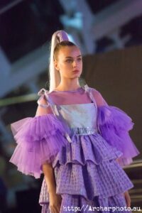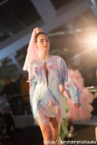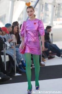 La subcultura Club Kids de los 90’s ha inspirado a Dominnico para crear “Harajuku Kids”. En su puesta en escena las modelos desfilaban con arriesgadas, pero muy cómodas, sneakers con maxiplataformas. Transparencias, volantes, flecos, lazos, muchísimas capas de tul y pvc holográfico definen esta colección tan millennial, en la que también tuvo presencia la piel natural. Y aquí es donde viene el problema… Dominnico apuesta por las pieles de animales en sus creaciones. Algo que chirría y choca con la idea de CLEC Fashion Festival acerca de una moda sostenible que emplee técnicas lo más respetuosas con el medio ambiente. Está claro que el uso de pieles ni es ético ni respetuoso con el medio ambiente. ¿Por qué lo haces Dominnico? ¡¿Por qué?! Me gustaría hacerle una entrevista.