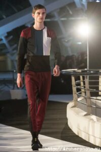 Entre las pinceladas que dejó el desfile se pudieron ver, entre otros, diseños de “Ucronía” (otoño/invierno 2015-16), una colección de satrería deportiva donde el negro predominante combina con toques de colores ácidos para crear bloques de color y formas geométricas. “23ª 51’ 19’’ (otoño/invierno 2017-18), la colección más espacial del diseñador en la que acolchados y tejidos técnicos construyen prendas oversize en colores como el azul klein, destellos metálicos y el blanco astronauta. El diseñador cerró el desfile con “Pantograph” (primavera-verano 2019), una propuesta dirigida al concepto de moda sin género, inspirada en el artista Jean Dubuffet, creador del “Art Brut”. Camisetas, shorts, cazadoras y trajes chaqueta en colores básicos como el rojo, azul y blanco, de entre los que se abre paso un arriesgado amarillo fluorescente.