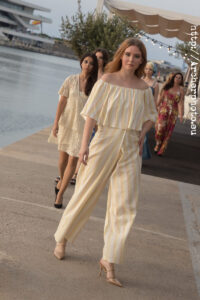 La moda tiende a encontrar su sitio. Para este desfile de Bimoï con Valencia Talents se escogió Duna Port, un restaurante en la Marina Sur de València. Es un lugar fantástico en la bocana del puerto, justo junto al mar y con unas vistas y una luz fabulosas.