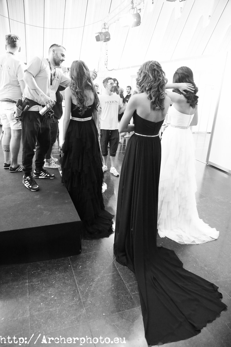 Curiosamente tengo una foto que hice en uno de los desfiles de la Semana de la Moda, casi por casualidad y que ni siquiera es buena, pero sí resulta muy ilustrativa. He ocultado los nombres, pero he dejado las alturas de las modelos para que sea evidente el tipo de modelos que piden en un desfile con un nivel profesional. Puntualmente se toleran modelos con menos altura, pero, para pasarela, la altura sí cuenta. El valor más frecuente es 1,77, aunque aceptan un poco más altas y un poco más bajas. Entre 1,74 y 1,82.