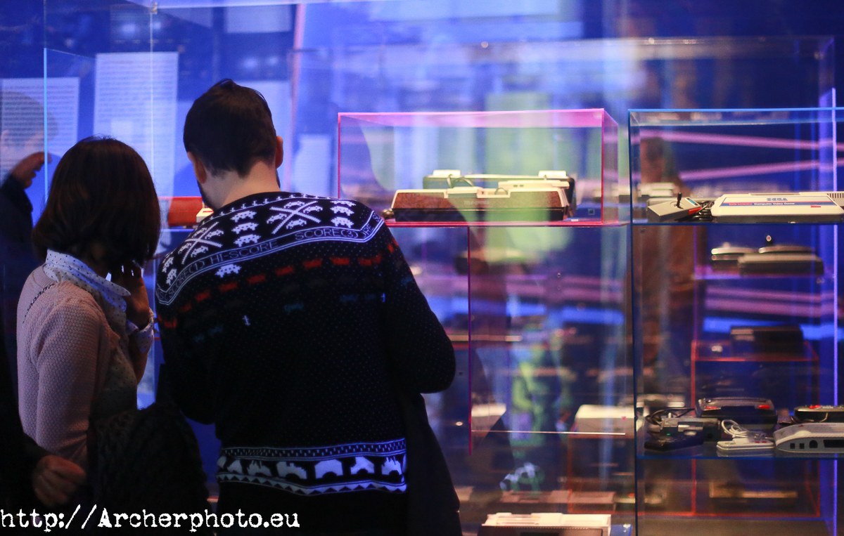 Hoy enseño solo un poco de la amplia gama de hardware para videojuegos que hay expuesta hasta el día 22 de febrero de 2015. Algunas son historia, como el Pong de Atari, y otros no son historia, pero sí recuerdos vividos: Spectrum, juegos LCD, Nintendo, Intellivision… Estas piezas -hay consolas y algunos otros complementos, como joysticks, pistolas, visores, etc) están tras la vitrina, pero en la parte superior hay una muestra de juegos Arcade de toda la vida, añadidos a algunos pinball restaurados, e incluso un Oculus Rift para probarlo. También hay una serie de materiales procedentes de empresas españolas de videojuegos más actuales (capturas de pantalla, bocetos previos, etc) y una selección de videojuegos clásicos. Tres salas de un museo dedicadas al décimo arte.
